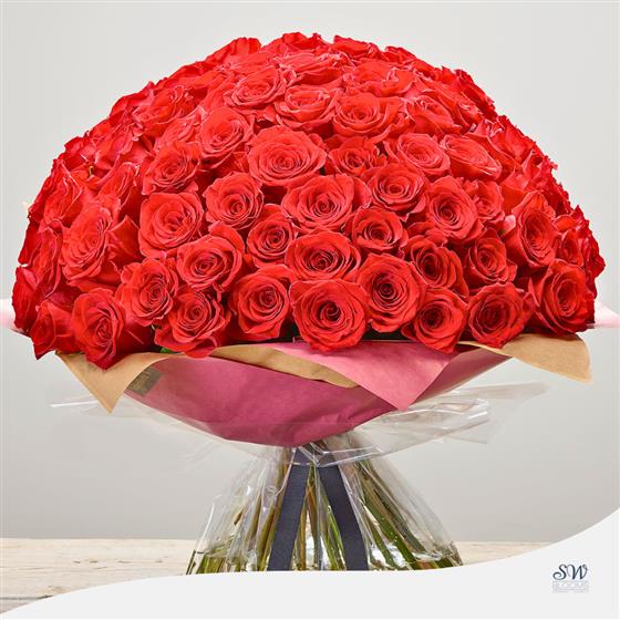 Create a grand gesture of love with our opulent 100 Red Roses Bouquet. This stunning arrangement showcases 100 Large-Headed Freedom Roses, each meticulously hand-tied and expertly presented in elegant gift packaging. Elevate your expression of love and make a lasting impression with this luxurious and breathtaking bouquet.