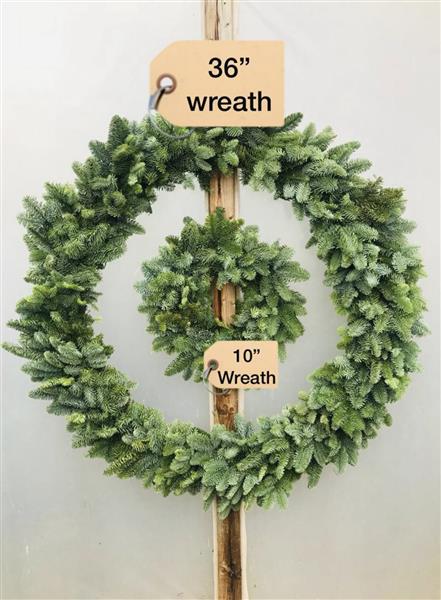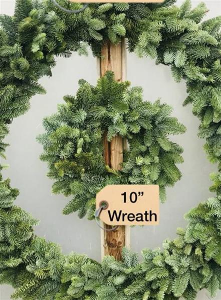 A 10 Inch Blue Pine Wreath. These are the smallest size we do but are still just as good quality. We will use Christmas decorations such as pine cones, Cinnamon twigs, Ribbon Bows and Berries with the decorated options. The Luxury option is decorated with more items than the decorated option. Best quality blue pine with straw or Moss back to keep fresh.