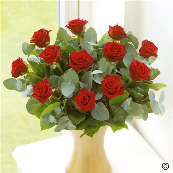12 Long stemmed 70cm Red Roses in gift wrapping.