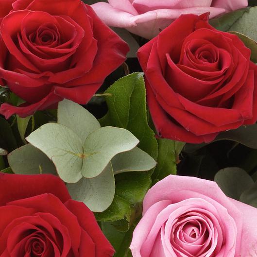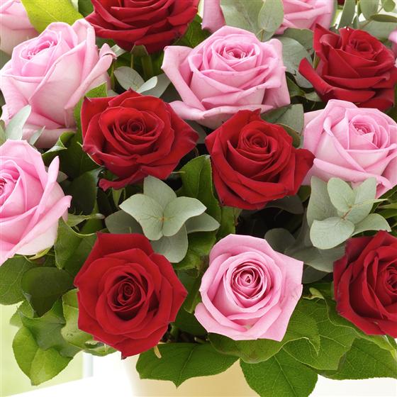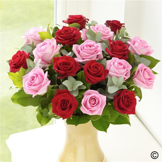 18 Long stemmed 70cm Red and Pink Roses in gift wrapping.