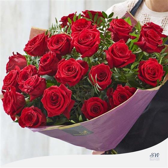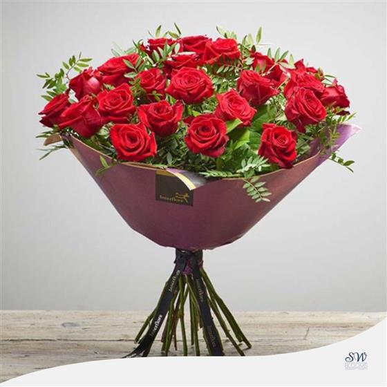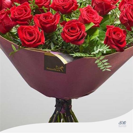Surprise your Valentine with the timeless charm of two dozen Red Roses, meticulously arranged for an exquisite gift. Please note that each bouquet is unique, so yours might differ slightly from the one in the picture, but rest assured, it will be equally stunning.