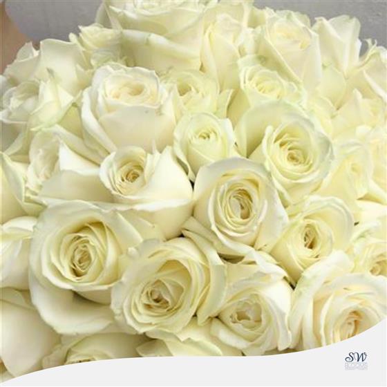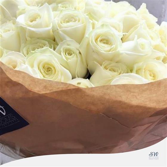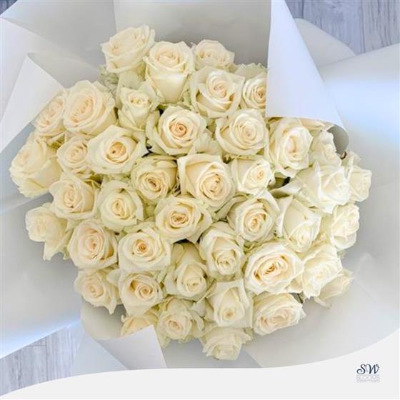 Indulge in the timeless beauty of our 50 White Roses Bouquet, showcasing 50 Beautiful Large-Headed Roses, each boasting an impressive 60cm in length. This hand-tied is a vision of purity and sophistication.
