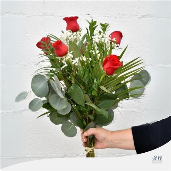 Embrace the elegance of simplicity with our 6 Red Roses Long Stem bouquet. Featuring Large-Headed Roses with hand-picked mixed foliage, the stems are left long at approximately 70 cm, wrapped in paper with a charming bow for a plain and simple natural look.