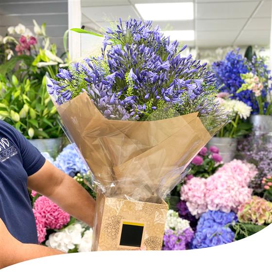 Selected for their longevity, our Agapanthus flowers remain fresh and vibrant with proper care, adding a touch of nature’s splendour to your space. Whether displayed in a simple vase or as part of an elaborate arrangement, our Agapanthus Bouquet brings height, dimension, and a sense of refinement to any decor.