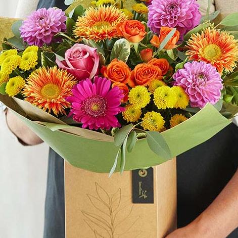 A large glorious fresh selection of autumn blooms in one of our signature eco-friendly, beautiful boxes.