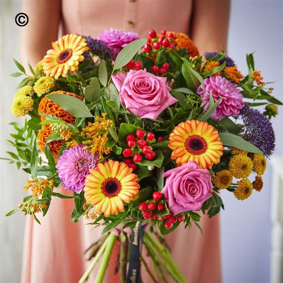 Autumn transformed into a gorgeous one-off bouquet, made just for them. Vibrant and bursting with seasonal blooms, they'll love it.