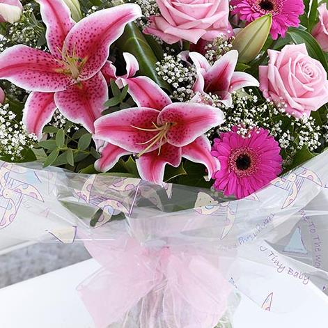 Make a statement with this sumptuous bouquet of bright pink, luxurious flowers. A new baby girl puts everyone in a celebratory mood, so we’ve designed this gift to be bold, bright and perfect for the occasion.