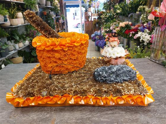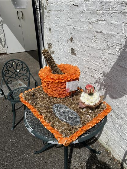 A flower tribute designed for a baker or cake maker.