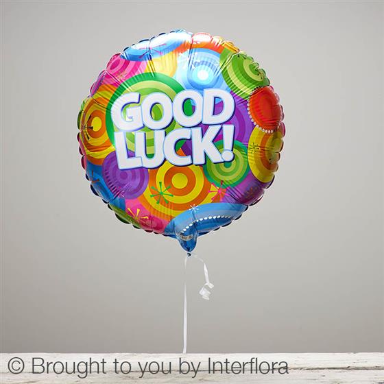 Wish them good luck and show them you’re thinking of them with this celebratory balloon in shiny silver and bright rainbow colours. The 45cm micro-foil balloon arrives filled with helium and tied to a weight with curling ribbon.