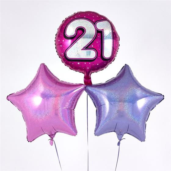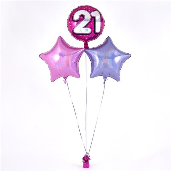 Balloon Bouquet - 21st Birthday Pink & Lilac Starlight