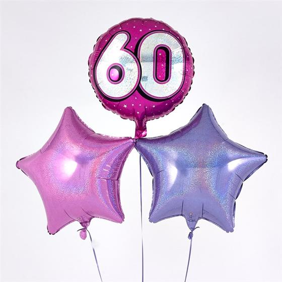 Balloon Bouquet - 60th Birthday Pink & Lilac Starlight