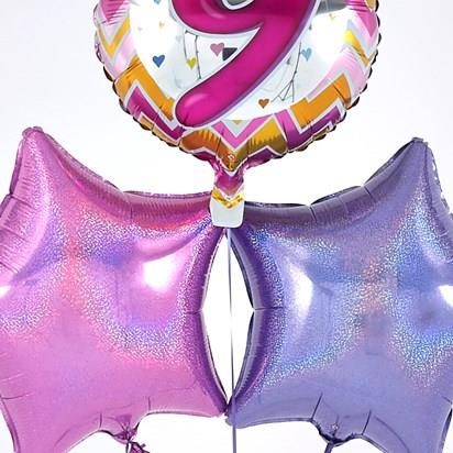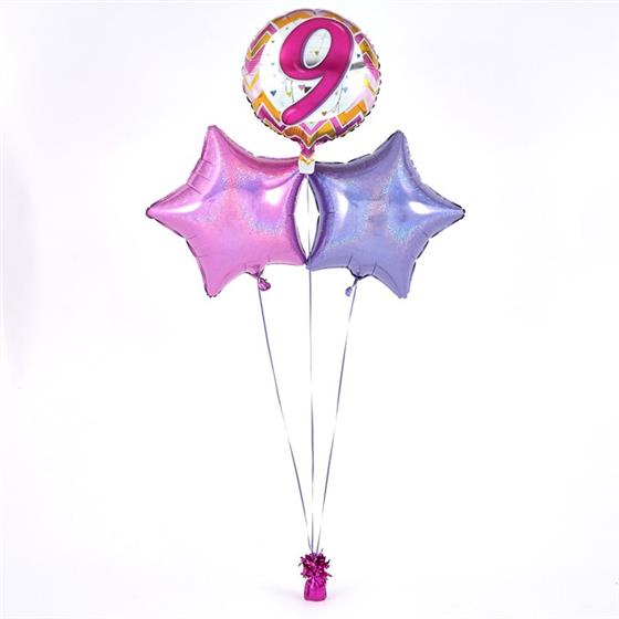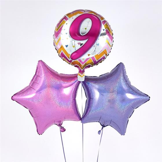 Balloon Bouquet - 9th Birthday Pink & Lilac Starlight