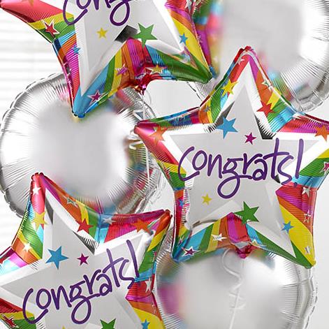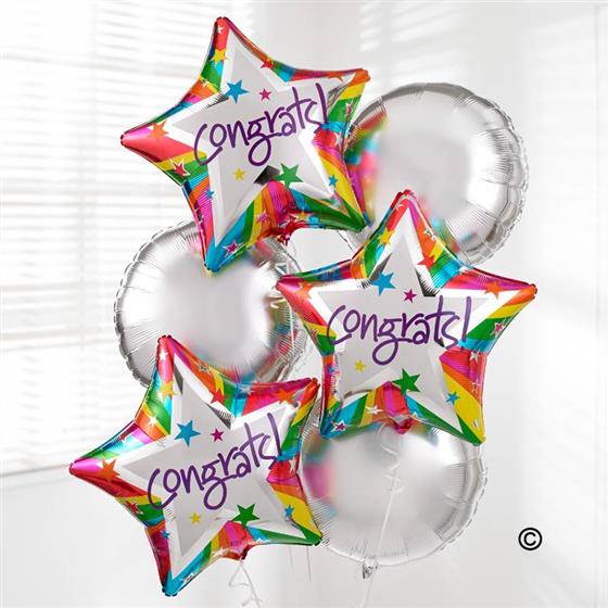 Congratulate someone with a surprise delivery of six helium filled balloons. Our Congratulations Balloon Bouquet includes three metallic silver balloons and three 'Congrats!' balloons - a gift they’re sure to love!