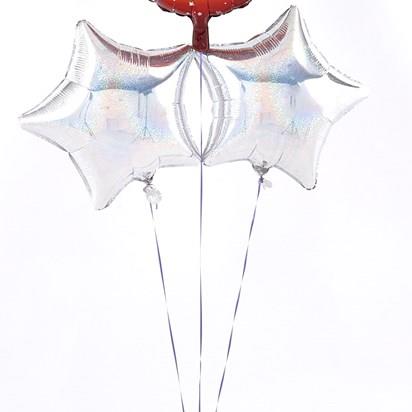 This eye-catching 30th Birthday balloon bouquet is radiant with an array of Orange and Silver metallic colours – just right for a 30th Birthday. The Star and Circular 45cm micro-foil balloons arrive filled with helium and tied to a weight with curling ribbon decorations.