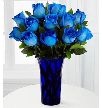 12 Blue Roses in a vase.