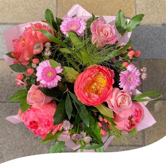 Introducing our Blushing Peonies Bouquet, a delightful ensemble featuring Peony blooms in charming pink tones. Expertly arranged to evoke a sense of blushing beauty, this hand-tied bouquet will captivate with its adorable and gorgeous impression.