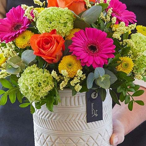 A picture-perfect display of flowers carefully arranged in floral foam. Presented in a stylish container they can use time and time again. Arrives ready to display and enjoy right away.