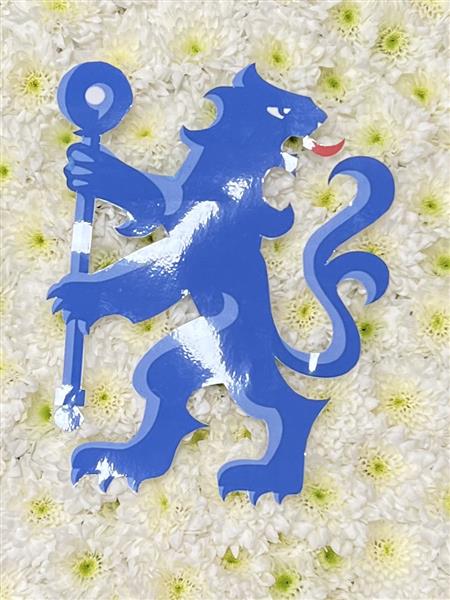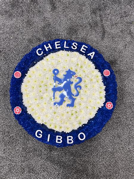The Chelsea Football Club Badge made out of flowers. We can personalise it with names or put football club in lettering at the bottom.