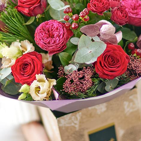 This gorgeous bouquet bursting with the freshest festive blooms will fill them with good cheer. Expertly arranged by hand by your local florist, and delivered with real care, it's a joy.