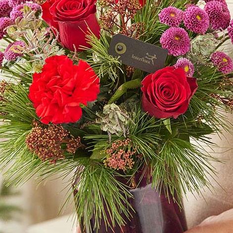 Hand-tied flowers perfectly pre-arranged and delivered in a stylish vase. Jolly festive tones for a truly Christmassy feel.