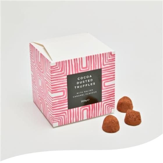 ntroducing our Cocoa Dusted Truffles with Salted Caramel Flavor (200g). Indulge in the rich taste of salted caramel enveloped in smooth cocoa dusted truffles.
