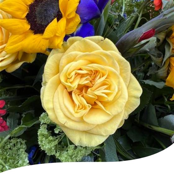 Including Sunflowers and Roses, Viburnum and Gerberas.