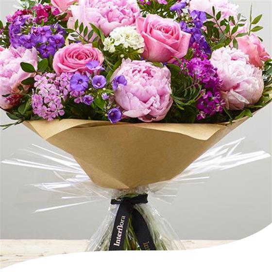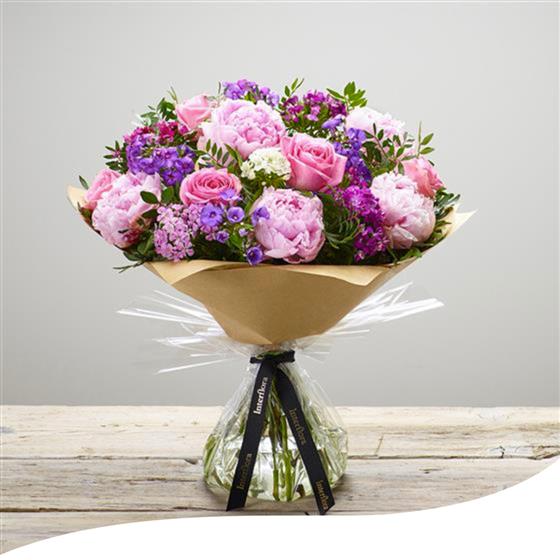 For an even more impressive impact, you can choose this hand-tied bouquet in extra-large, deluxe, and luxury sizes, where we'll include additional Peonies and foliage.