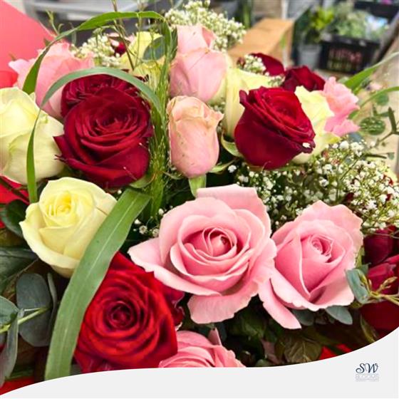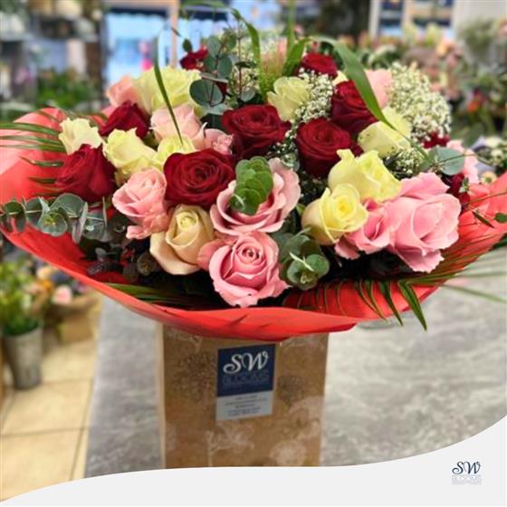 Your bouquet is carefully prepared and arrives in water, ensuring the longevity of its freshness. To facilitate easy transport and maintain its pristine condition, it is elegantly presented in a stylish box. Immerse yourself in the beauty of these meticulously selected blooms, a perfect gift for any occasion. Elevate your floral experience with SW Blooms.