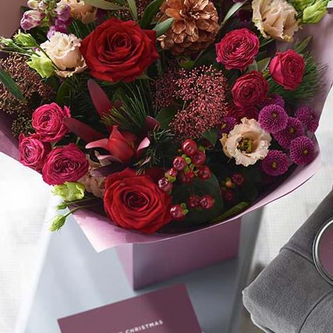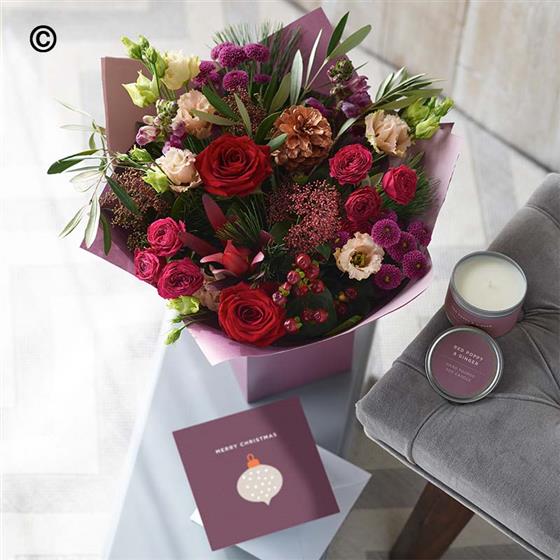 Take one exquisite handcrafted gift box, made just for them by their local florist using the finest festive flowers, scented candle and a beautiful card, and you've got a perfect pressie.