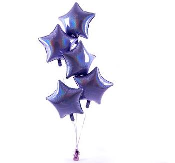 This eye-catching Lilac Star balloon bouquet is radiant with an array of Lilac metallic colours – just right for getting into the party mood. The Star 45cm micro-foil balloons arrive filled with helium and tied to a weight with curling ribbon decorations.