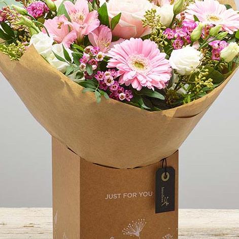 Hand-tied flowers expertly arranged and perfectly presented in a pretty gift box. Each and every design is one-of-a-kind, created by an artisan florist using the freshest stems available on the day so, whilst your gift will look different to the one pictured, it’ll still be just as lovely.