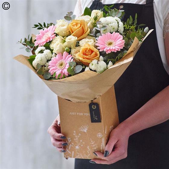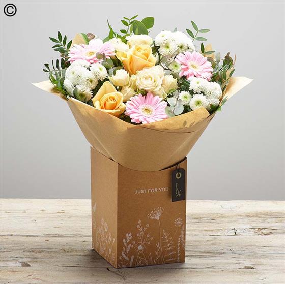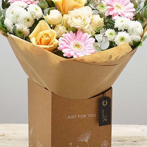 Hand-tied flowers expertly arranged and perfectly presented in a pretty gift box. Each and every design is one-of-a-kind, created by an artisan florist using the freshest stems available on the day so, whilst your gift will look different to the one pictured, it’ll still be just as lovely.