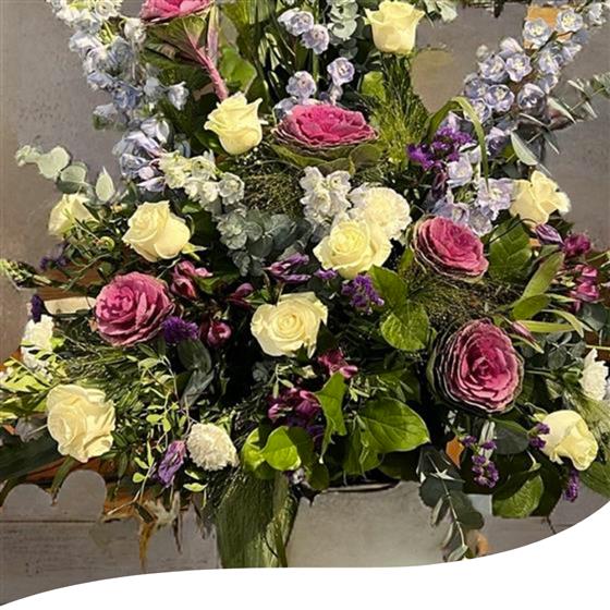 We will use a selection of Roses, Delphiniums, Cabbages, Phlox, Statice, Lisianthus and Alstromerias.