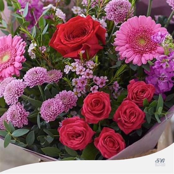 Indulge your sweet Valentine with a truly unique experience— a bespoke bouquet meticulously crafted by our skilled florists. This Valentine's Mixed Hand-Tied Gift Box boasts a blend of gorgeous fresh blooms in romantic hues, poised to sweep them off their feet.