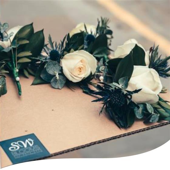 The stems are sealed to keep it fresh through the big day. Arrives with pins ready to attach.