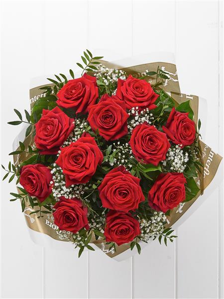 Sending a bouquet of Red Roses says it all and you can relax in the knowledge that our florists will select 12 of the finest large-headed red Roses to create a hand-tied bouquet guaranteed to take their breath away.