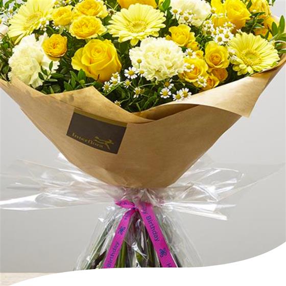 Make their birthday extra special with our Happy Birthday Dream Bouquet (Large). This cheerful arrangement showcases a stunning mix of vibrant yellow flowers and Daisies, whose bright and playful blooms perfectly capture the essence of celebration.
