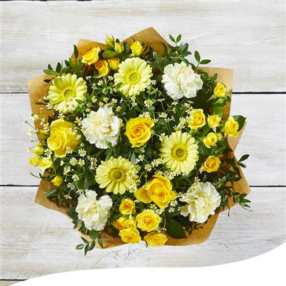 Bright Daisies: The focal point of the bouquet, symbolising joy and celebration.
