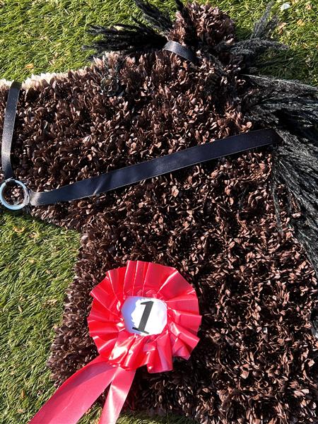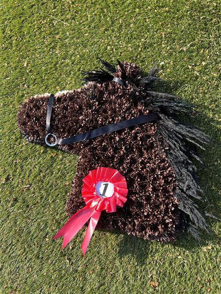 A Horse’s head tribute made with flowers. We can personalise, spray and create different colours and looks.