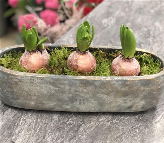 3 Wax Dipped Hyacinths into one of our lovely Concrete Window Planters.