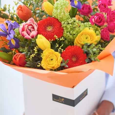 A handcrafted bouquet made by a local florist using the freshest blooms. This classic bouquet will feature flowers in vibrant shades inspired by spring. Think tangerine, cerise, chartreuse and ochre.