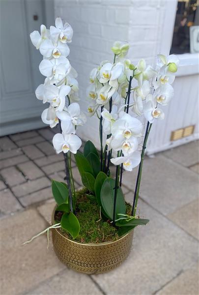 Comes in a large golden embossed pot, this Orchid is guaranteed to take centre stage & brighten anyones day!