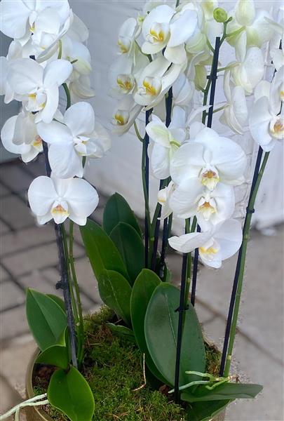 This beautiful white Orchid is a beautiful & incredibly eye-catching piece for any home.