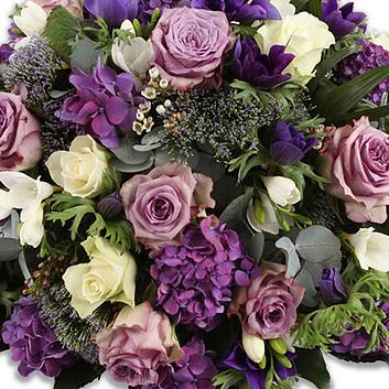 This mixed Purple Posy includes Lilac Memory Lane Roses, White Spray Roses, Purple Hydrangea and Freesias.