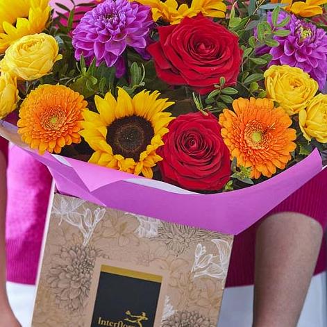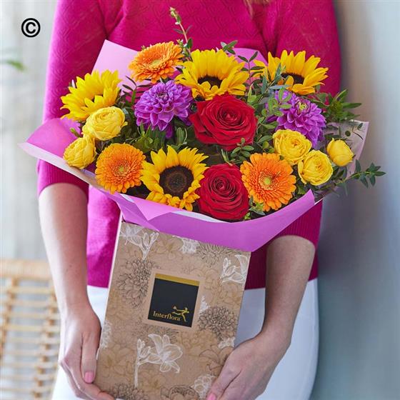 If they're in need of serious sunshine, this is the bouquet for them. A combination of five glorious sunflowers, lush roses, plus a selection of other summer blooms in gloriously bright shades. We're feeling warmer already...