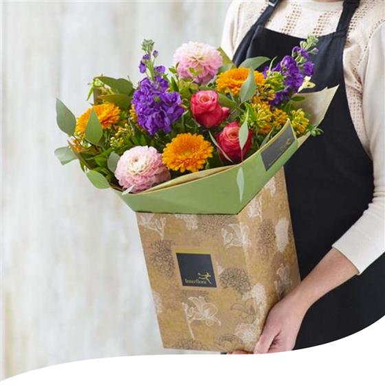 Expertly arranged by our skilled florists, this hand-tied features a beautiful mix of seasonal flowers in warm sunset colours, designed to bring a big smile to the recipient’s face.
