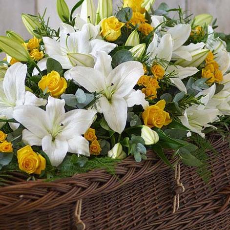 A classic spray of roses and fragrant oriental lilies contrasted beautifully with foliage.
