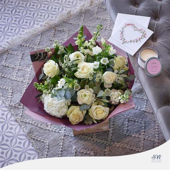 Love Bundle - Valentine's Neutral Flowers with Card & Scented Candle