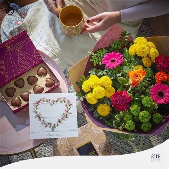 Love Bundle - Vibrant Hand-Tied With Chocolate & Card