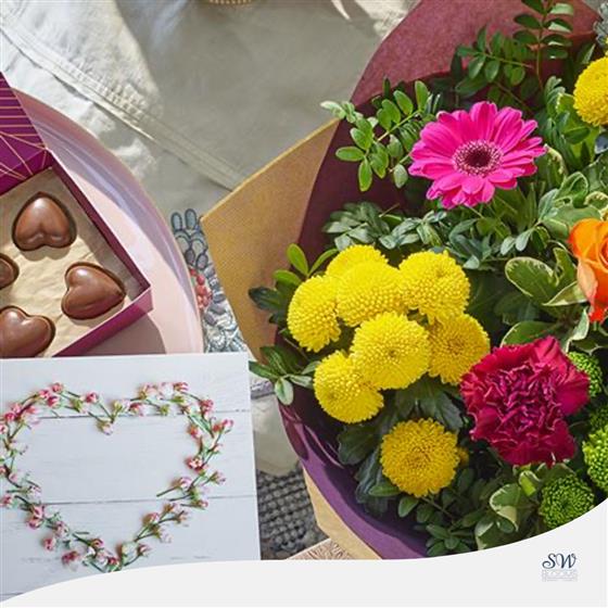 Elevate Valentine's Day with our Love Bundle - Valentine's Vibrant Hand-Tied, Chocolate & Card – a unique creation by skilled florists. Bursting with vibrant hues, this hand-tied it's a true reflection of passion and care.